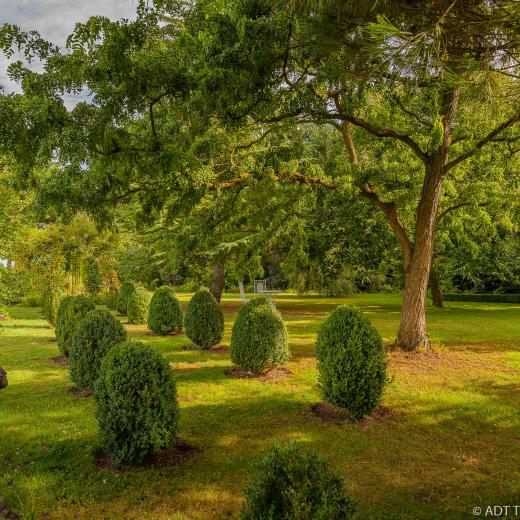 Tantôt strictement taillées, tantôt enroulant leurs guirlandes lascives autour des troncs, les roses de l’Arboretum des Grandes Bruyères nous offrent aussi généreusement leur ombre et leur parfum au détour des