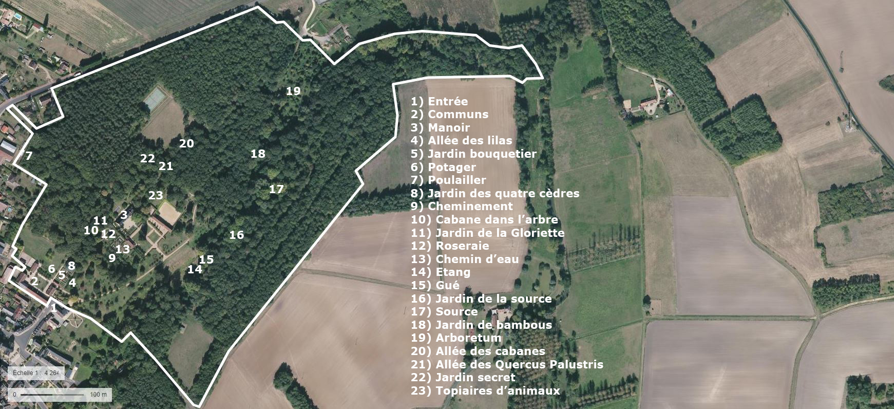 Superficie des jardins 4,5ha / domaine 20ha